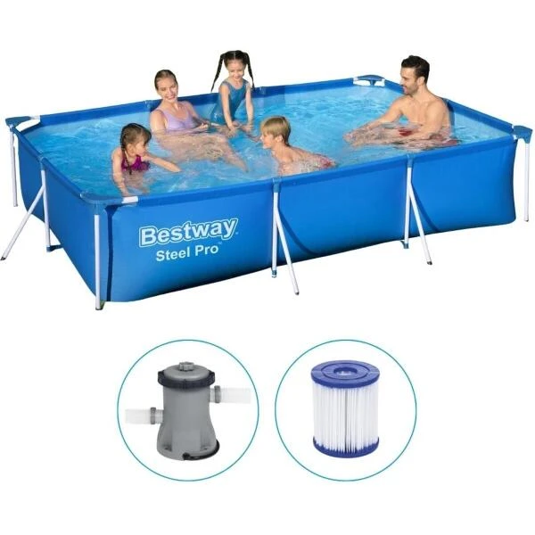 Het rechthoekig stalen frame zwembad is gemaakt van duurzaam Tritech materiaal bestand tegen UV stralen en chloor. Het frame is corrosiebestendig en getest op gewicht en druk van grotere hoeveelheden water. Bij het zwembad wordt een cartridgefilter van 1,2 m³/u geleverd waarmee je het water schoon kunt houden.