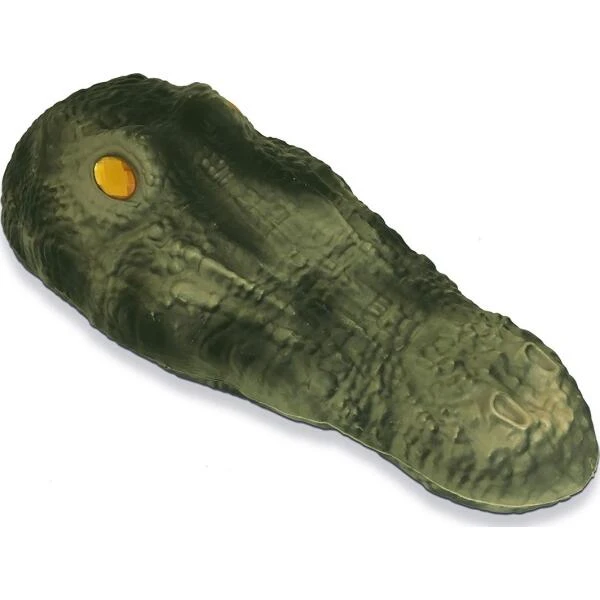 Deze krokodil verdedigt de vijver tegen reigers en andere vogels die het op de vissen gemunt hebben.