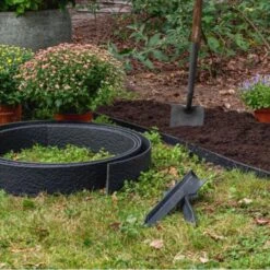 Deze ecologische tuinafboording wordt geleverd in een totaalpakket inclusief paaltjes en schroeven zodat je onmiddellijk aan de slag kan. Ze heeft een mooie neutraal zwarte kleur.