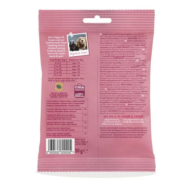 Beloon jouw trouwe viervoeter met deze natuurlijke hondensnack van Edgard & Cooper. Ze zijn op zakformaat waardoor je ze makkelijk kunt meenemen tijdens het trainen of als je gaat wandelen met de hond. Zo heb je altijd een energierijke beloning op zak! De hondensnoepjes zijn bovendien zorgvuldig verpakt in een 100% biologisch afbreekbaar zakje.