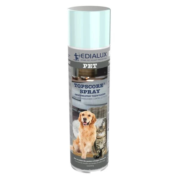 Voor de verdelging van extoparasieten zoals vlooien en hun larven in honden- en kattenmanden, kussens, tapijten, zetels en andere rust- en verblijfsplaatsen van jouw hond of kat. Krachtige spuitbus tegen vlooien in en rond de manden van honden en katten. Met zeer snelle aanvangswerking en lange nawerking zodat vlooien jouw huidier niet langer belagen.