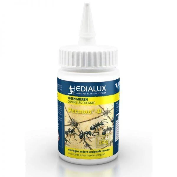 Gebruiksklaar strooipoeder ter bestrijding van mieren, wespen en ander kruipend ongedierte in en rond gebouwen. Met lange nawerking ter bestrijding van kruipende insecten in woon-, werk- en verblijfsplaatsen.