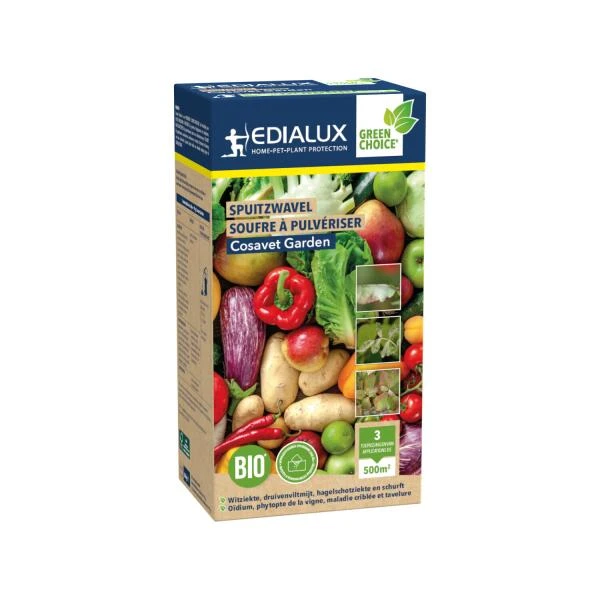 Cosavet garden is een fungicide dat werkzaam is tegen witziekte in vele teelten. Het heeft een preventieve contactwerking, wat betekent dat kieming van schimmels wordt vermeden. Verdere aantasting van de plant kan hiermee ook vermeden worden. Reeds voorgedoseerd in handige wateroplosbare zakjes waardoor het product niet stuift.