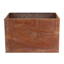 De plantenbak biedt veel ruimte aan bloemen, kruiden en planten. Na verloop van tijd zal het weer en de invloed van de elementen de plantenbak verder doen roesten, wat resulteert in een prachtig verweerde eindlaag. Onderaan zijn er openingen aangebracht zodat overtollig water altijd moeiteloos uit de plantenbak weg kan wegstromen.