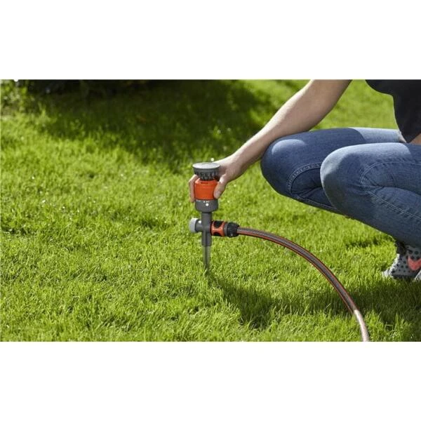 Hij zorgt steeds voor een gelijkmatige besproeiing van jouw tuin, dankzij de speciale turbine. De sproeirichting kan afzonderlijk worden ingesteld. Met de meegleverde kunststof houder, kan je de sproeier stevig in de grond bevestigen.