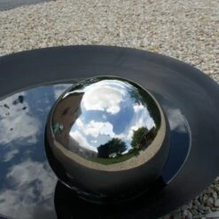 Decoratieve heksen- of spiegelbol van gepolijst roestvast staal, ook RVS of inox genoemd blijft kleurvast / verkleurt niet na verloop van tijd. Door de ronde vorm weerspiegelt zich het gehele tuinpanorama in de bol. Het houdt reigers door de weerkaatsing op een afstand van je vissen.