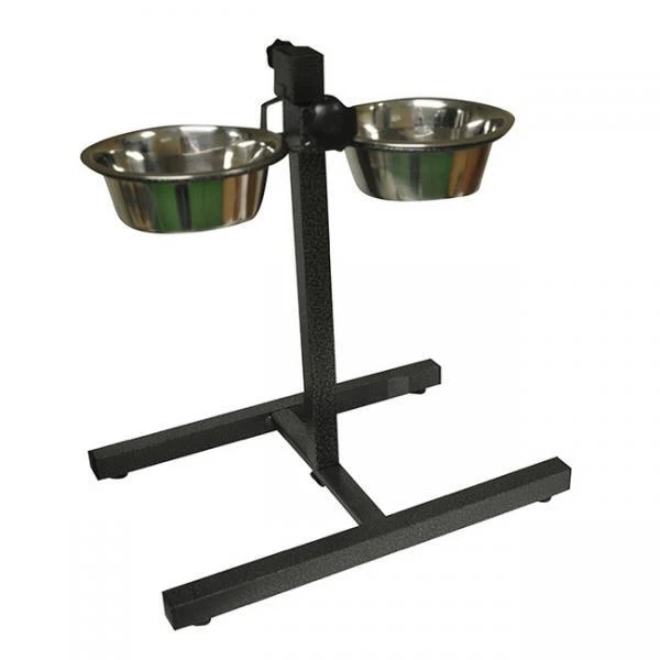Voor grotere honden is deze eet- en drinkbak op statief uitermate praktisch. De hoogte is verstelbaar volgens de grootte van de hond.