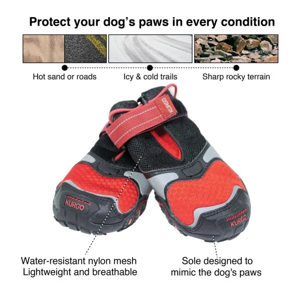 De voetzolen van de hond zijn zeer gevoelig en kunnen best beschermd worden als je in deze omstandigheden de hond uitlaat. De schoenen bieden alle comfort omdat ze zo zijn ontworpen dat ze de kussentjes van de poten nabootsen. Het strak geweven nylon gaas is waterafstotend en voorzien van een ademende bovenkant in synthetisch leder.