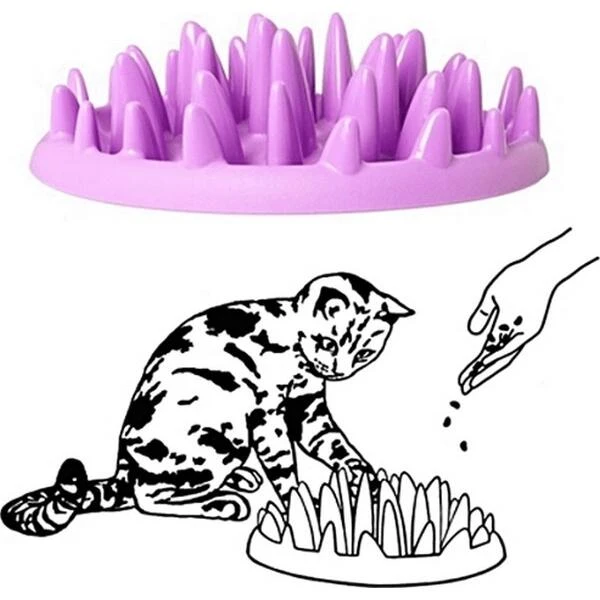 Verdeel de brokken van de kat over de voederbak, tussen de pinnen. De kat kan daarna de brokken overal tussenuit halen. Hierdoor verleng je de eettijd en voorkom je het schrokken en te gulzig eten. Het resultaat is een actievere en gezondere kat.