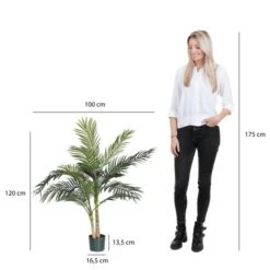 Een mooie, groene Areca palm sierplant, ook gekend onder de naam Goudpalm, Goudvruchtpalm of Arekapalm. Deze kunstplant heeft een natuurlijke uitstraling dat haar kleur niet verliest, geen extra zorgen vraagt en een lange levensduur heeft. De frisgroene blaadjes geven elk interieur een fris en exotische sfeer.