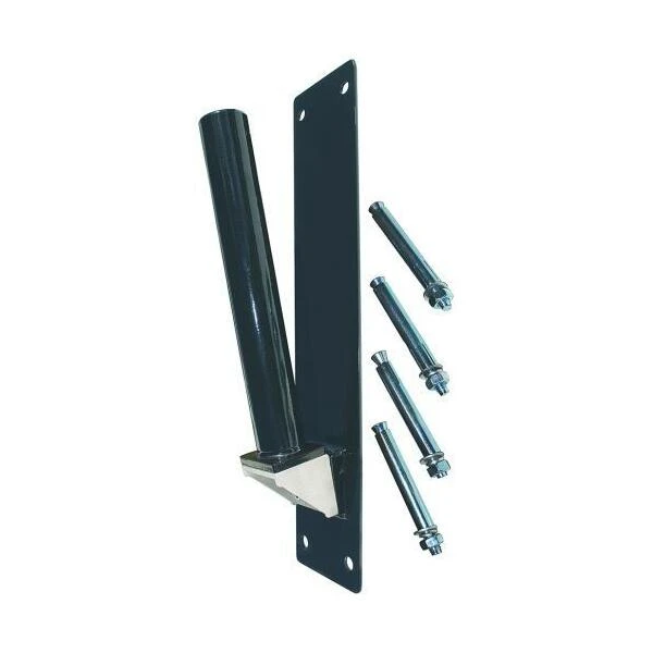 Complete muurbeugel om een Kite Hawk op paal van 7 of 10 meter in te plaatsen. De muurbeugel bestaat uit een stalen muurplaat (ca. 4 mm) waarop een stalen koker van ca. 30 cm wordt gemonteerd.