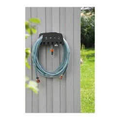 Om de slang op te bergen hoef je alleen maar de slang op de muurhouder te rollen. Altijd klaar voor gebruik. Je kan er eveneens broezen en andere accessoires aan ophangen. Ideaal om te besproeien.