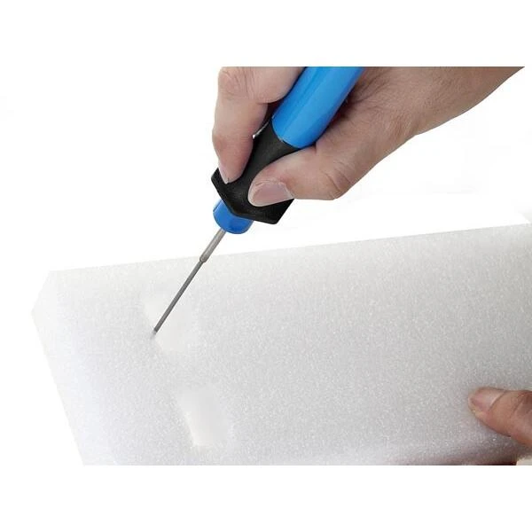 Piepschuimsnijder met 3 verschillende stiften: een gloeidraad, een graveerstift en een warm snijmes.Dit toestel heeft een zeer snelle opwarmtijd van ca. 10 seconden en is geschikt voor het snijden van alle types polystyreenschuim.