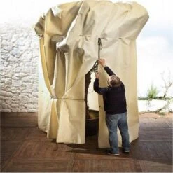 De beschermhoes is voorzien van een rits waardoor je de planten snel kan inpakken, controleren en terug kan uitpakken. Met de voorziene trekkoord kan je de hoes stevig rond de pot aanspannen. Dankzij de rits en de trekkoorden zit de thermohoes als gegoten rond jouw planten zodat hevige wind er (bij het correct aanbrengen) praktisch geen vat op kan krijgen. Bij gewone vliesdoeken is dit tot ieders frustratie vaak wel het geval.