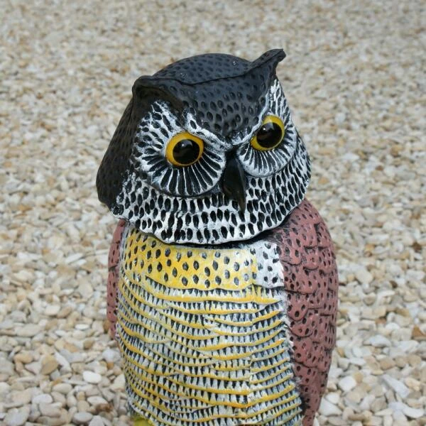 Plaats deze mooie, grote uil op een zichtbare plaats in de tuin om ongedierte en vogels te verjagen. De kop van de uil beweegt in de wind en de ogen reflecteren lichtbronnen waardoor deze uil er zeer echt uitziet.