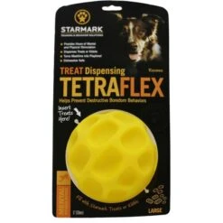 Starmarks Tetraflex is een speelbal voor honden die kan gevuld worden met snacks of brokjes, waardoor jouw hond zich urenlang kan bezighouden. Het vertraagt het eetproces en helpt bij honden die gulzig eten. De bal is drijvend en kan gebruikt worden in water.