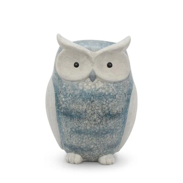 Deze fraaie uil maakt deel uit van de Basalt collectie. Het keramieken beeld in grijsblauwe tinten heeft een natuurstenen look met marmer effect. Het beeld past zowel in het interieur als op de tuintafel.