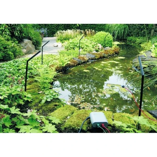 Deze pond protector biedt de ideale oplossing om vijvervissen te beschermen tegen rovende reigers en katten. Door het spannen van een schrikdraad voorkom je dat reigers en katten de vijver kunnen benaderen en zo jouw kostbare vissen tot het laatste exemplaar uit de vijver vangen.