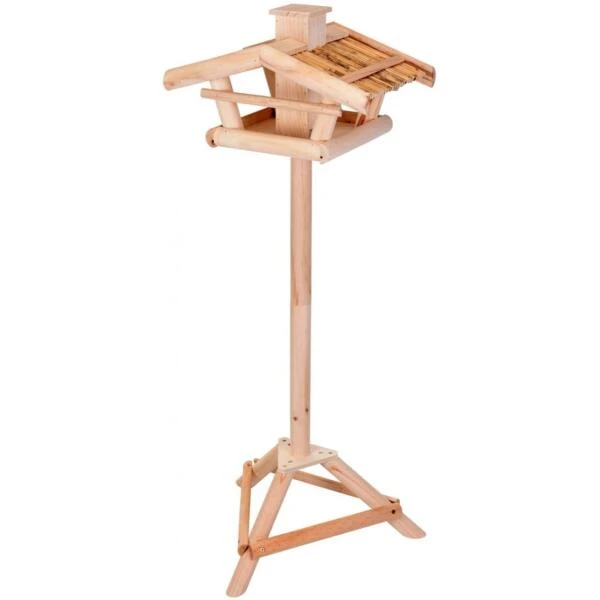 De voedertafel heeft een mooie vormgeving die in alle tuinen past. Het dak is belegd met rietstengels en biedt bescherming aan de kleine vogels tegen barre weersomstandigheden zoals sneeuw, regen en hagel, zo blijft het voeder langer vers. Het afdak beschermt etende vogels tegen katten en grotere roofvogels.