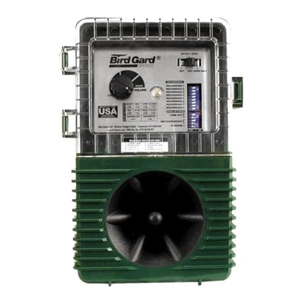 Deze professionele vogelverjager met een bereik tot 6000 m² maakt 8 verschillende geluiden van roofvogels en noodkreten van de specifiek te verjagen vogels. Instelbaar in volume, lengte, soort vogel, tijdklok, willekeurig tijdstip (dag, nacht, 24 uur).