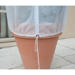 Twee hoezen die gebruikt kunnen worden om pot- of kuipplanten in de winter te beschermen tegen vorst, koude en sneeuw.