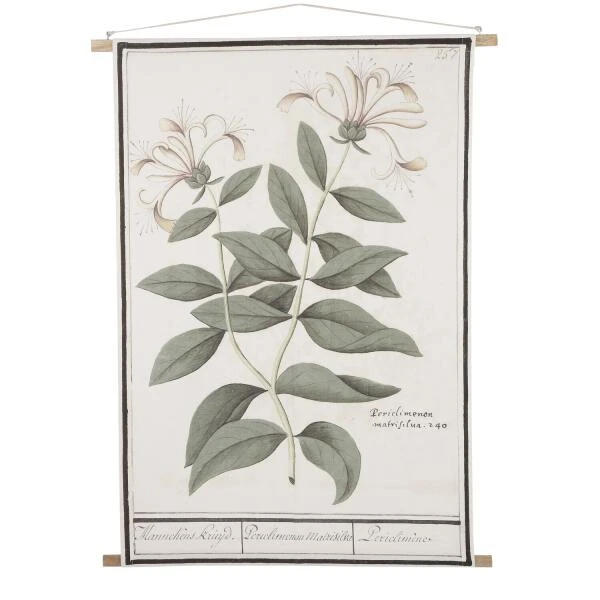 Deze poster met botanische print past perfect in je landelijk interieur en geeft een vintage twist aan jouw urban jungle. Op het doek in katoen staat een tekening van een kamperfoelie afgebeeld.