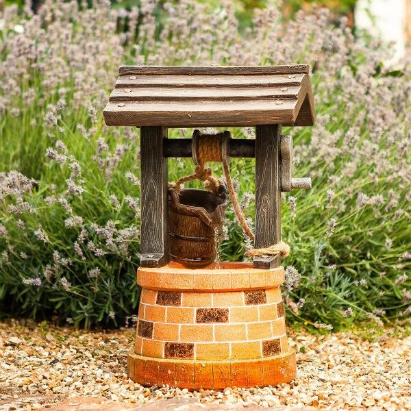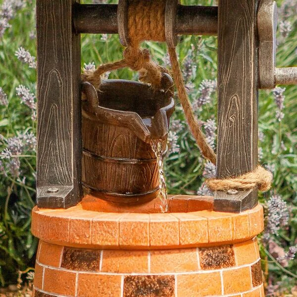 Geniet van het ontspannende geluid van water dat uit de emmer in de put valt. Met deze prachtige wensput creëer je een rustgevende sfeer in jouw tuin, terras of balkon.